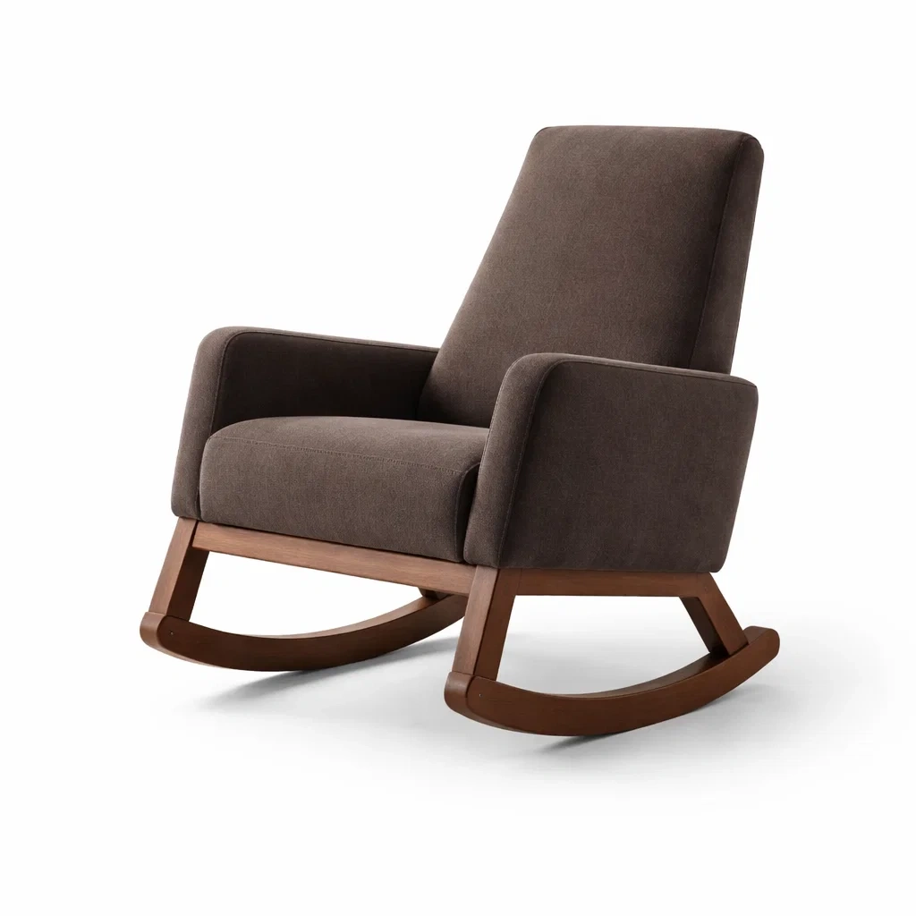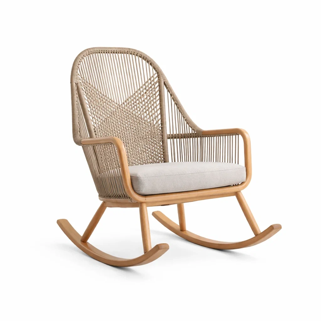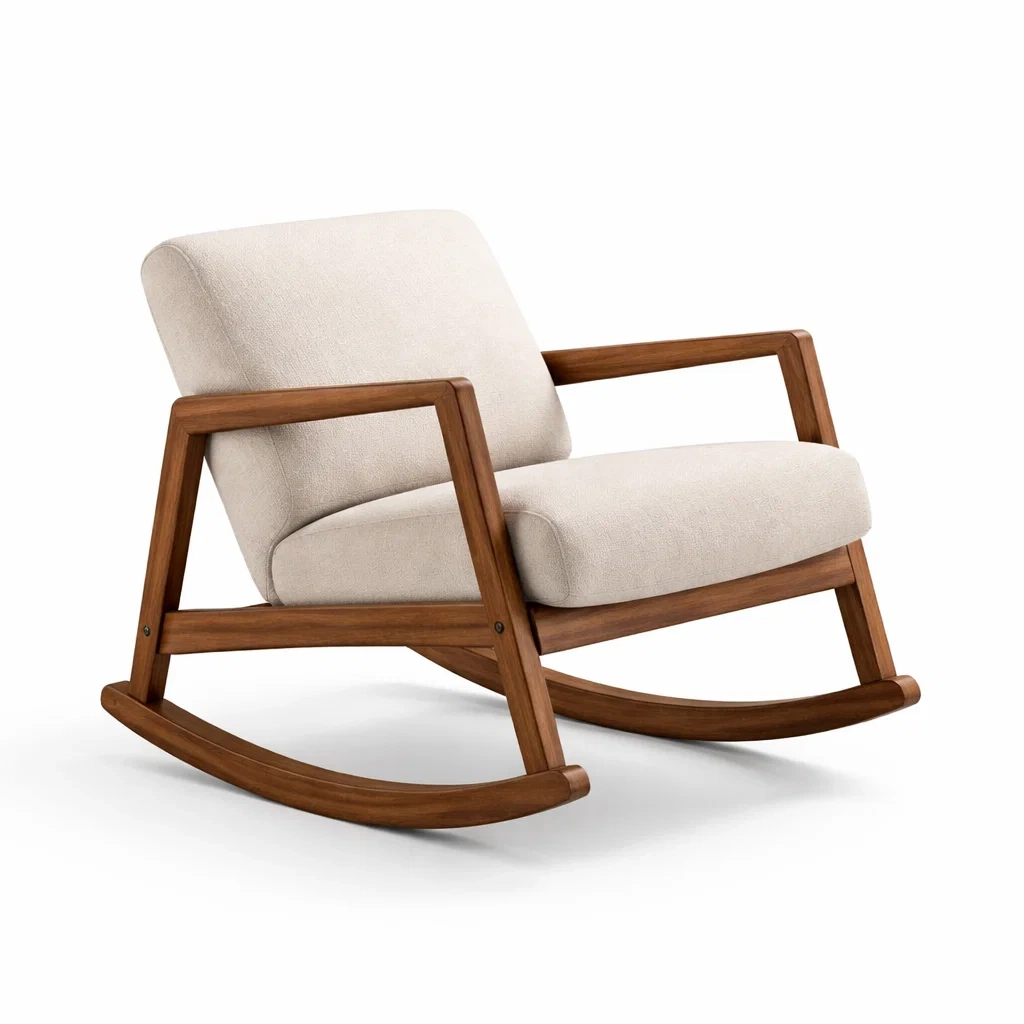 Fauteuil à bascule en bois avec coussin en tissu beige