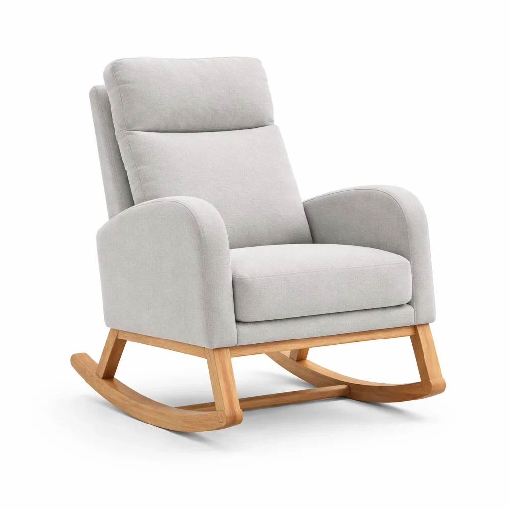 Fauteuil à bascule en tissu avec structure en acier et bois beige