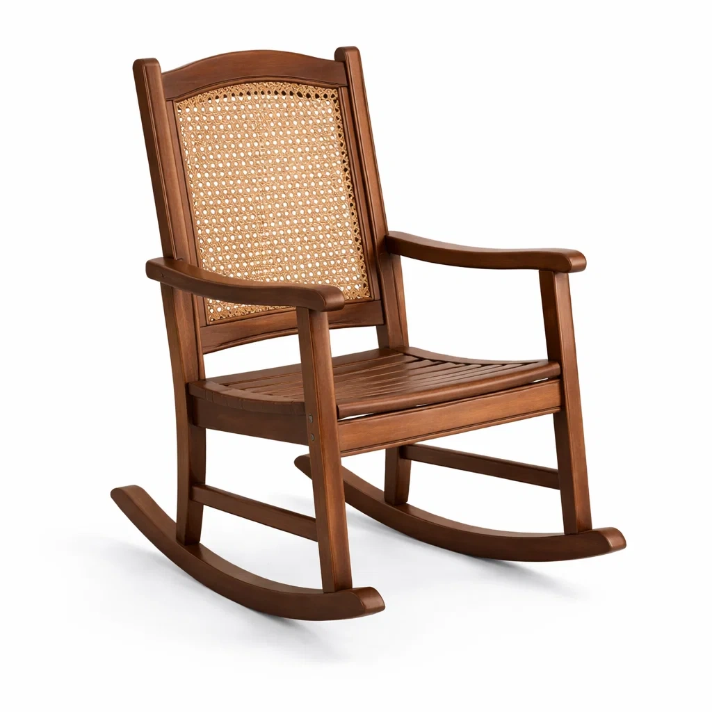Fauteuil à bascule en bois avec dossier en rotin marron 97x65x90 cm