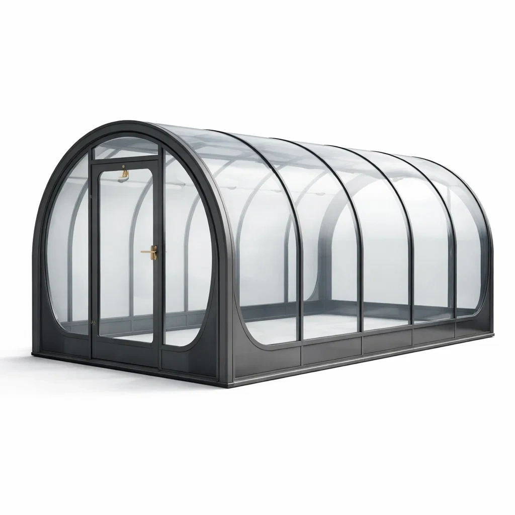 - Matériau : Cadre en aluminium, panneaux en polycarbonate transparent de 4 mm